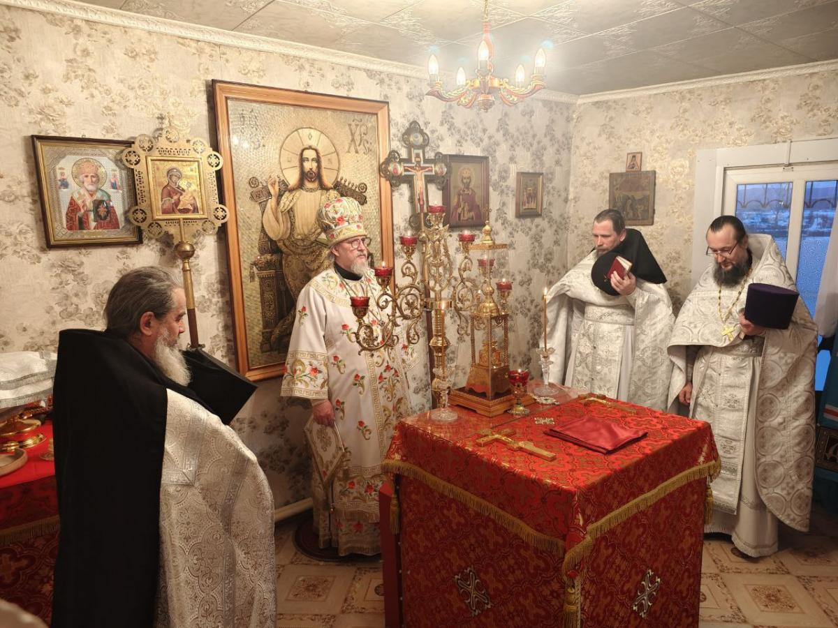 Его Высокопреосвященству сослужили: настоятель Князе-Владимирского храма г. Хилок иеромонах Тихон (Каськов), настоятель Архиерейского подворья Иоанно-Предтеченского Варлаамо-Чикойского мужского монастыря Красночикойского района иеромонах Евстафий (Третьяков), настоятель соборного храма Покрова Пресвятой Богородицы г. Петровска-Забайкальского иерей Валерий Дёмин.